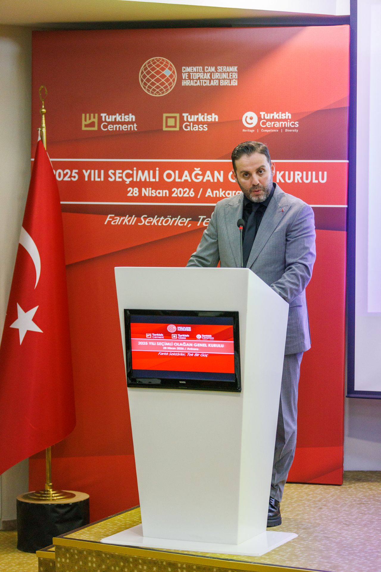 Çimento, cam ve seramik sektörlerini tek çatı altında birleştiren ve 2 bini aşkın üyesiyle Türkiye’nin alanındaki tek koordinatör birliği olan Çimento, Cam, Seramik ve Toprak Ürünleri İhracatçıları Birliği (ÇCSİB), 2025 Yılı Olağan Seçimli Genel Kurul Toplantısı’nı 28 Nisan 2026 tarihinde Ankara’daki Genel Sekreterlik Hizmet Binası’nda gerçekleştirmiştir. Sektör temsilcilerinin yoğun katılımıyla düzenlenen toplantı; açılış, saygı duruşu ve İstiklal Marşı ile başlamış; Yönetim Kurulu Başkanı Erdem Çenesiz ile Başkan Yardımcıları Tansu Kumru ve Ender Şahin’in sektörün geleceğine ve birliğin vizyonuna dair hitaplarının ardından Genel Kurul Başkanlık Divanı seçimiyle devam etmiştir.