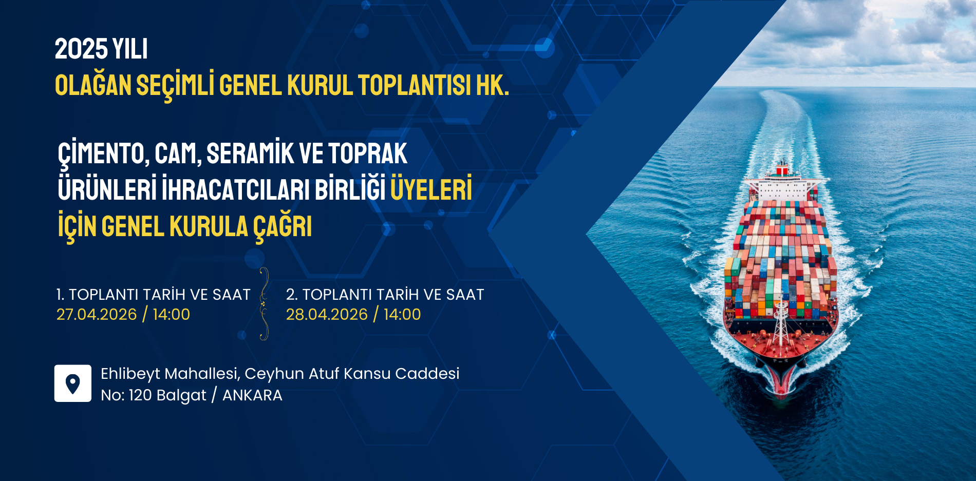 Çimento, Cam, Seramik ve Toprak Ürünleri İhracatçıları Birliği Üyeleri İçin Genel Kurula Çağrı ÇCSİB Genel Kurul SirküleriEk 2A (Tüzel Firmalar İçin Temsilci Bildirim Yazısı)Ek 2B (Şahıs Firmaları İçin Katılım Yazısı)