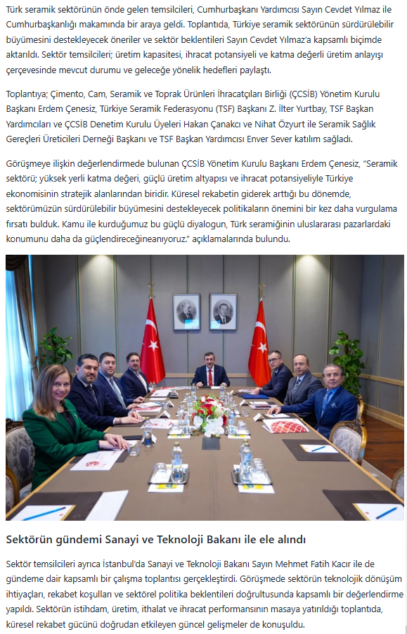 Seramik Sektörü Cevdet Yılmaz Ziyareti